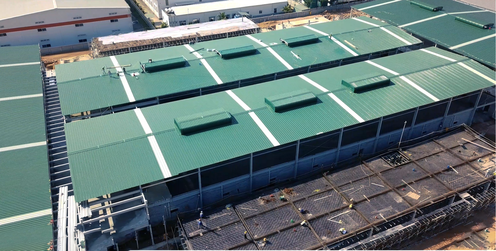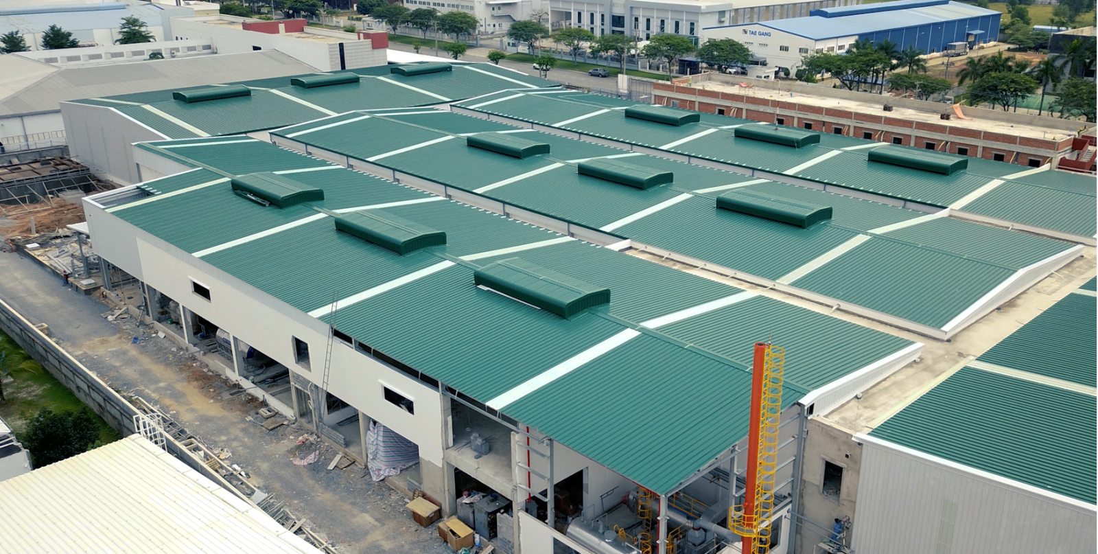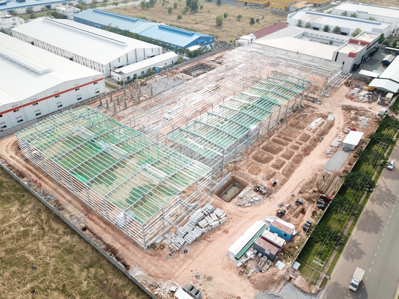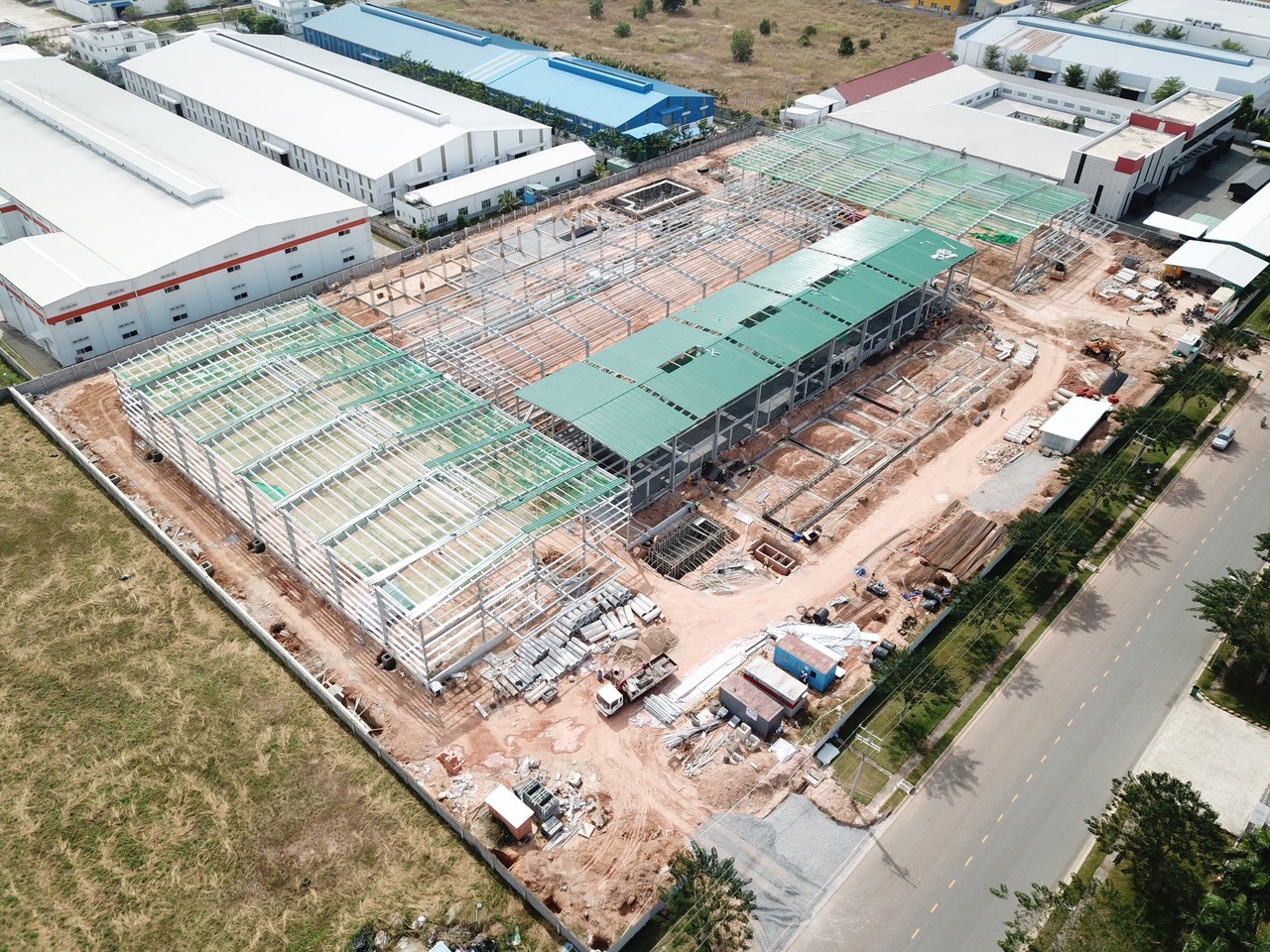 Công trình: Nhà máy sản xuất ST Food Chủ đầu tư: Công ty TNHH ST Food Địa điểm: Số 5, đường số 24, khu công nghiệp Việt Nam - Singapore II-A, xã Vĩnh Tân, thị xã Tân Uyên, tỉnh Bình Dương Nhà thầu kết cấu thép: Công ty CP CK-TV-XD-DV Minh Việt Sơn Quy mô: m2 Hạng mục: Nhà xưởng và các hạng mục phụ trợ Năm: 2021