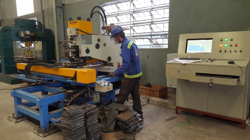 - Công việc lắp ráp các tấm thép thành cấu kiện có tiết diện chữ I thông qua máy ráp tự động.