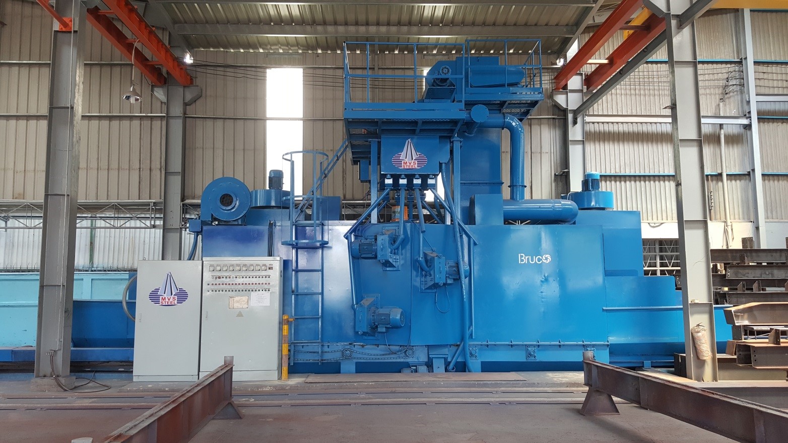 Built-up steel plates and welds are then cleaned physically or cleaned by using the sand-spraying machine, depending on the customers’ choices.
