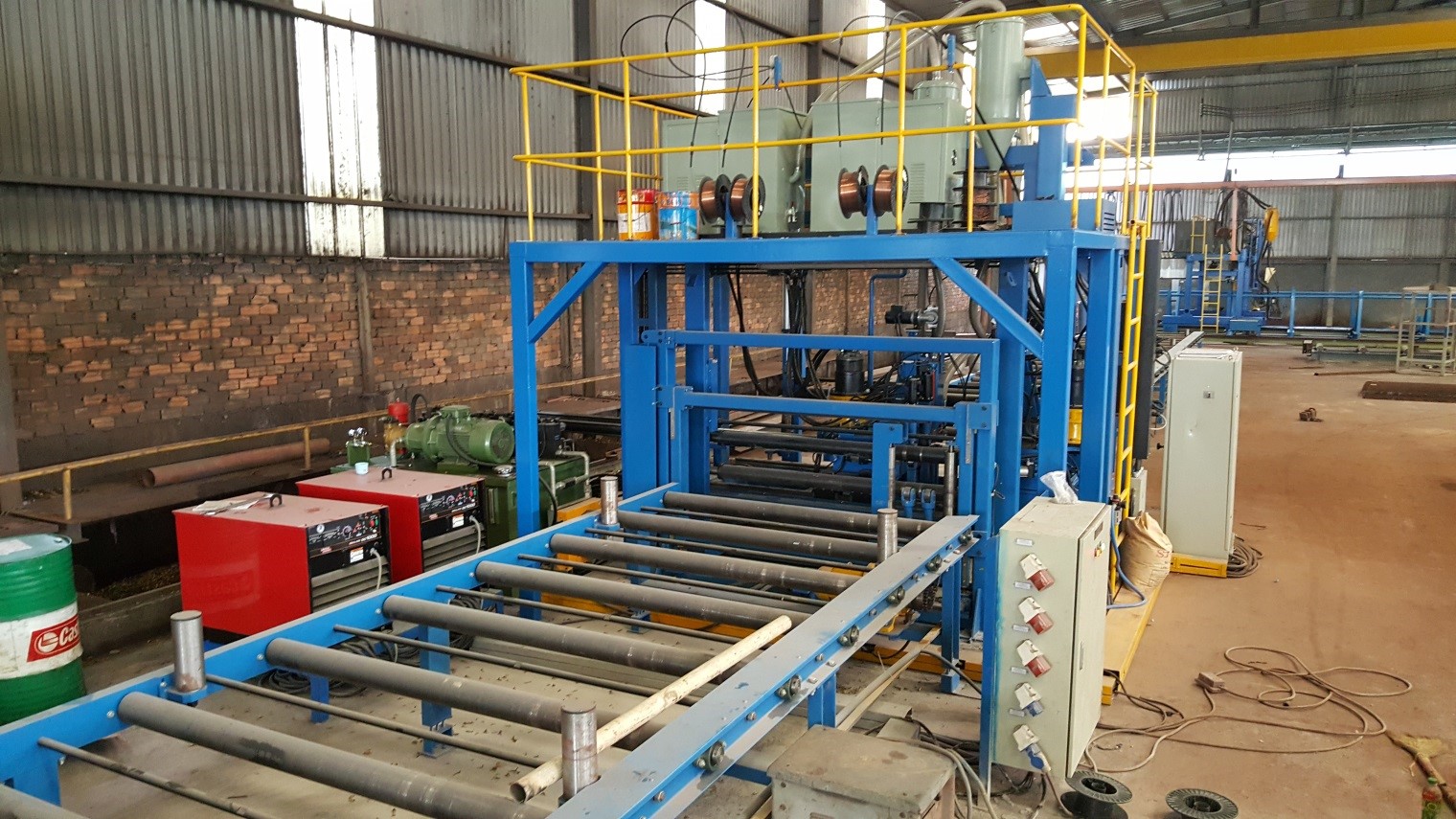 After assembling, components are transferred to the next procedure of welding two flanges of steel plates with submerged arc weld. This process creates welds with high quality, big intension and absolute sealing